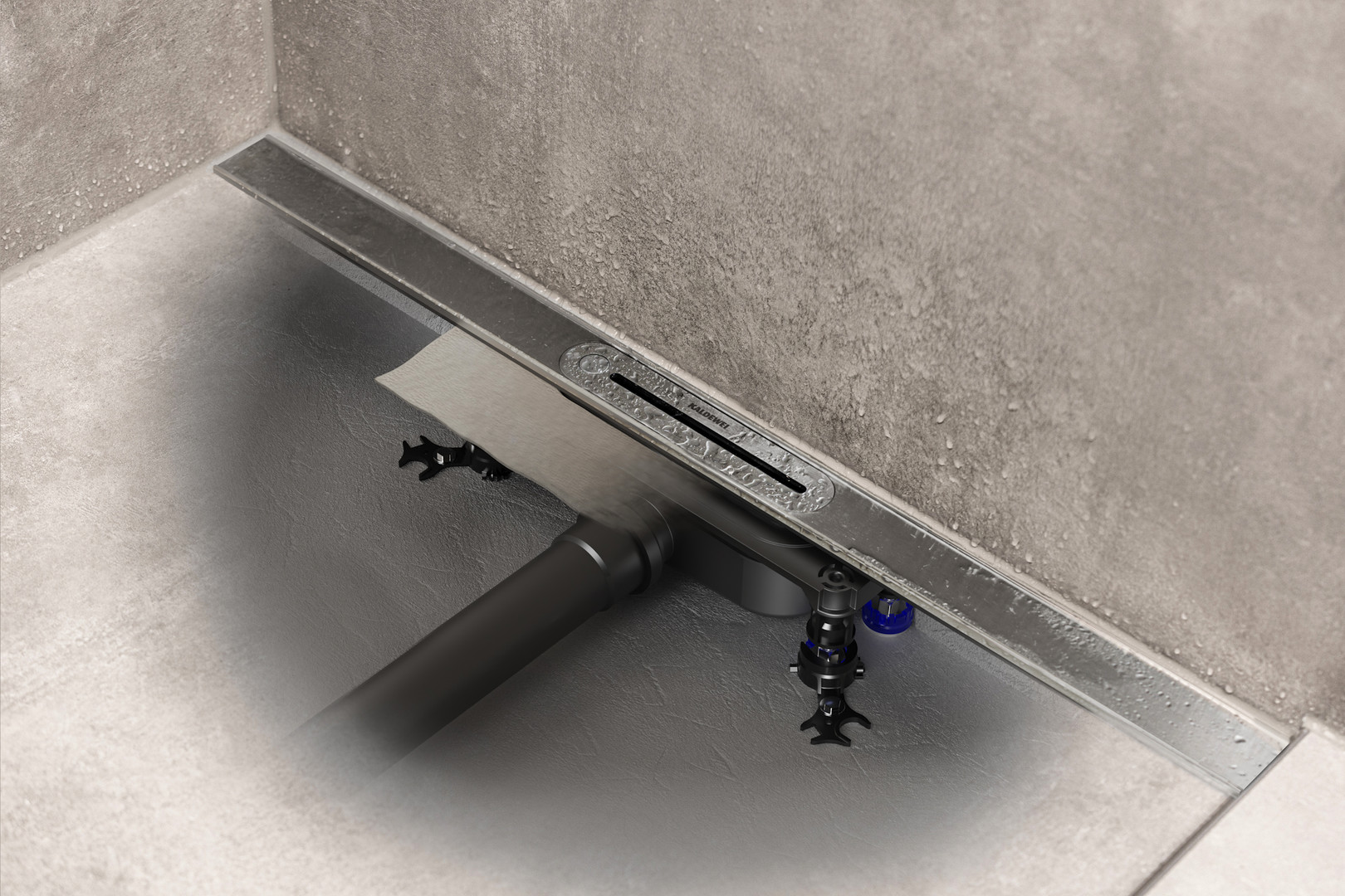 Edelstahl, Reinigung mit dem KALDEWEI CLICK’N CLEAN® Öffnungsmechanismus, individueller Einbau durch stufenlose Anpassung der Standardlängen, bodenseitiger Gesamtaufbau (Fliese, Fliesenkleber, Abdichtung) von 11-28 mm, auch für fugenlose Böden geeignet, Positionierung vor der Wand sowie direkt an der Wand möglich bei wandseitigen Gesamtaufbau (Silikon, Fliese, Fliesenkleber, Abdichtung) von 14-20 mm, mit kürzbaren Höhenausgleichsstücke zur flexiblen Anpassung des bodenseitigen Gesamtaufbaus, abgestimmt auf alle FLOWDRAIN HORIZONTAL Ablaufgarnituren Komplett-Sets