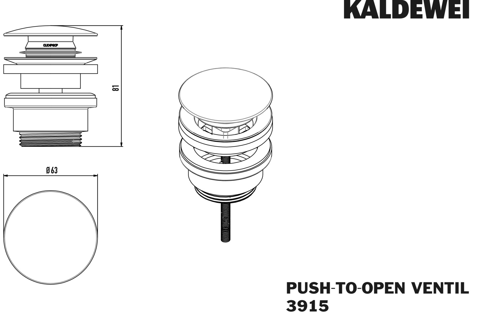 Kaldewei Push-to-Open Ventil 3915 für Waschtisch, mit Überlauf, schwarz matt 100