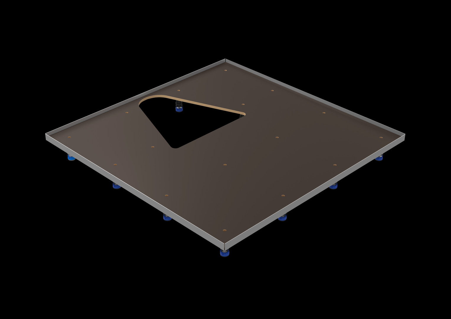 Ausrichten dank planer Oberfläche, Justieren der höhenverstellbaren Füsse von oben, durchgängige Oberfläche ermöglicht Installation der Duschfläche, Material geeignet für Punktbelastung und verhindert Silikonabrisse, integrierte Schalldämmung an den hohenverstellbaren Füssen