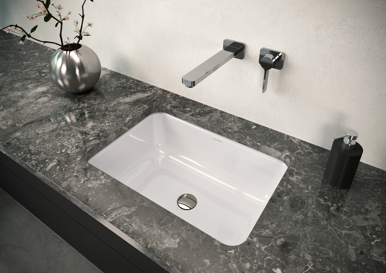 Kaldewei Unterbauwaschtisch CAYONO 3190 59,6x42,6cm, ohne Hahnloch, schwarz matt, alpinweiß W48799