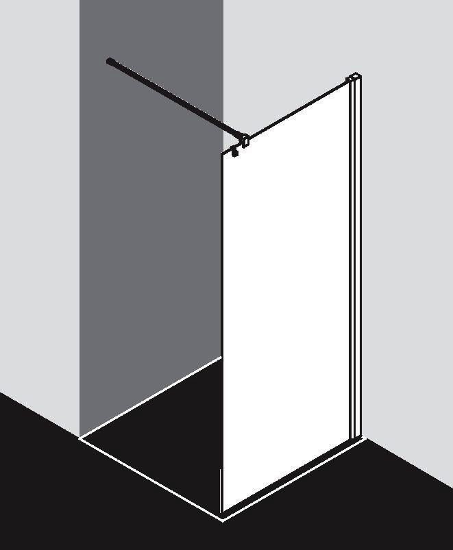 mit Wandbefestigung, 90° Stabilisierung, Verglasung mit 5 mm Einscheiben-Sicherheitsglas nach DIN EN 12150, Profile aus eloxiertem Aluminium, Stabilisierung aus eloxiertem Aluminium und Metall, Verstellmöglichkeit im Wandprofil 25 mm, Befestigungsmaterial