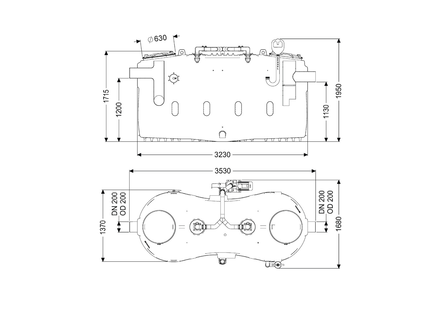 | Nenndurchmesser alle Anschlüsse | DN 200 |