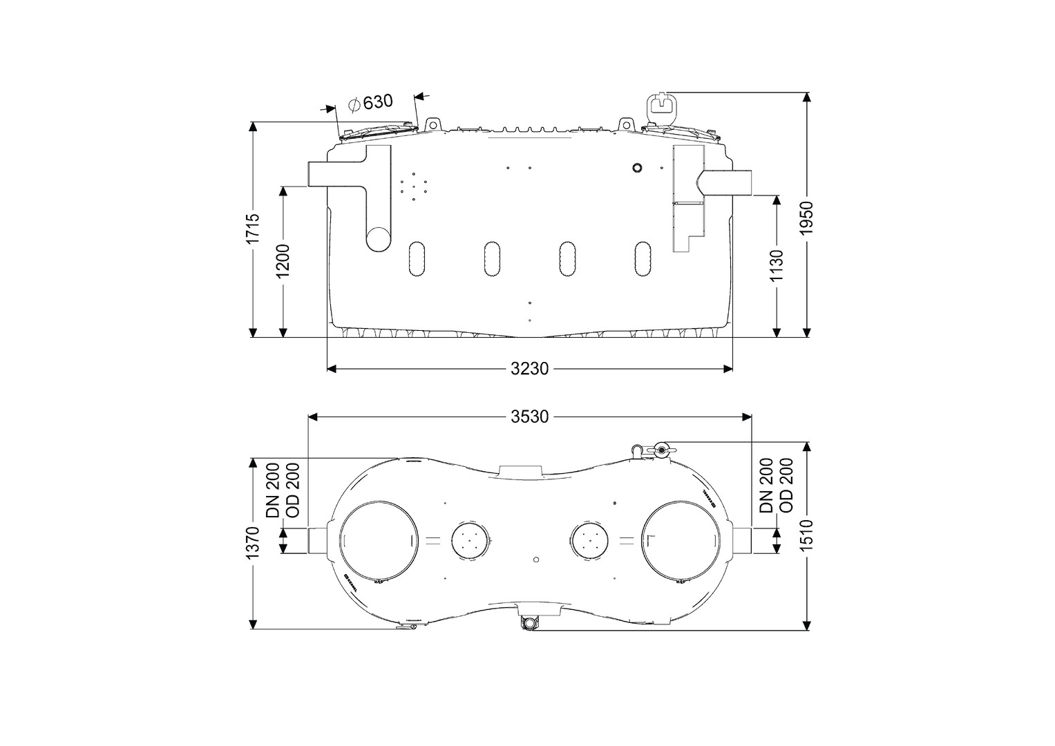 Rohraußendurchmesser alle Anschlüsse 200 mm