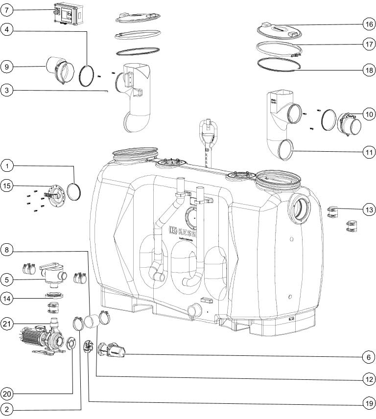 Kessel Fettabscheider EasyClean free Mix & Pump NS 7, ohne Sonic Control W556852