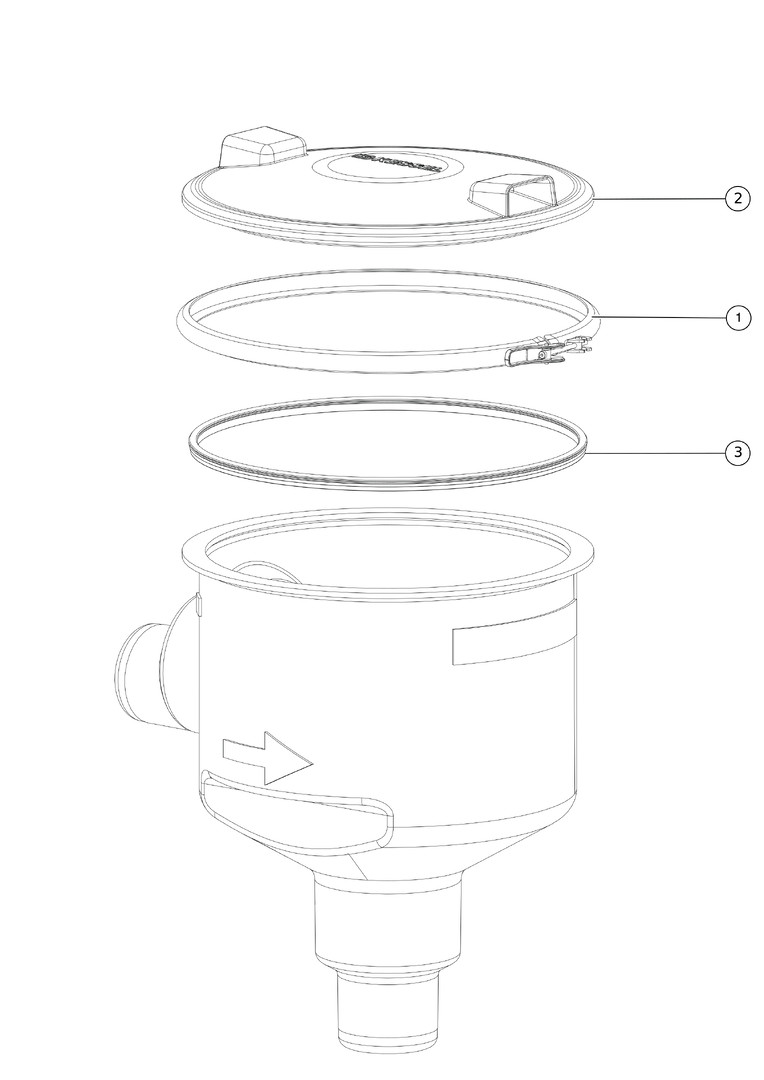 aus Kunststoff, zum Anschluss an die Ableitung von Abscheideanlagen, leerlaufend, Zu- und Auslauf DN 100/150 frei wählbar für Kunststoff-Rohre aus PE-HD (nach DIN 19537), PVC-HT, PP oder AS, mit Deckel mit Schnellspannverschluss geruchsdicht verschlossen, Absturzhöhe 120 mm