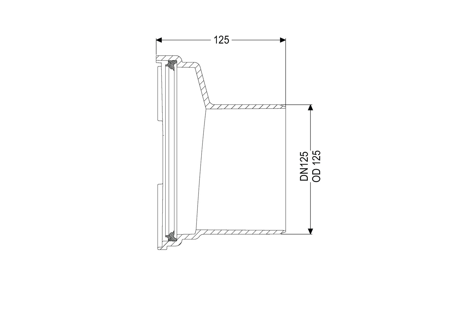 Kessel Spitzende DN 125, abnehmbare Stutzen beidseitig, Kunststoff
