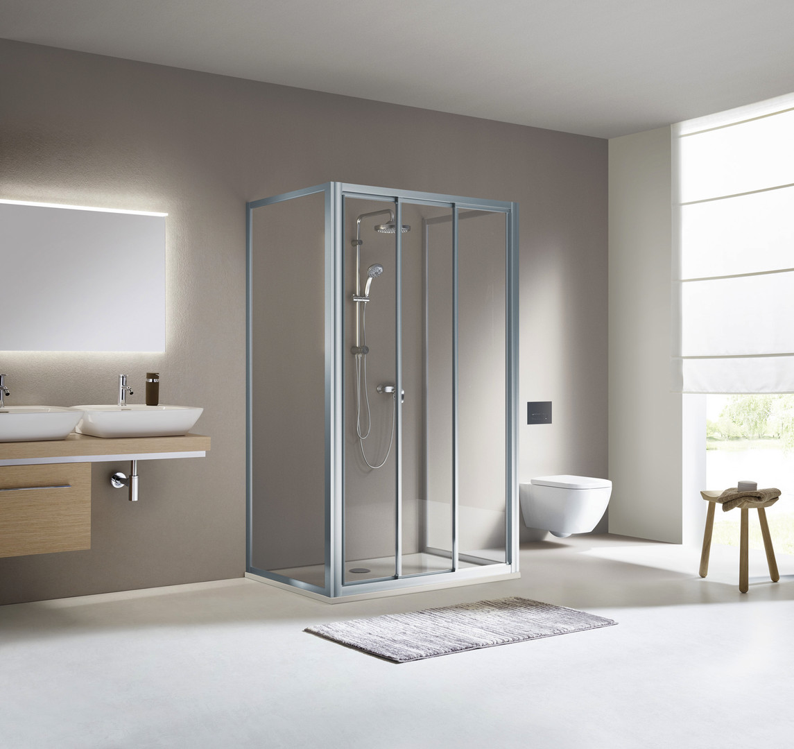 Links und rechts verwendbar, in Verbindung mit Schiebe- und Pendeltüren, Eck- und Viertelreisduschen als U-Kombination, Eckverbindungsprofil im Lieferumfang enthalten, Glasstärke ESG 4 mm/Polyrit 3 mm, gerahmt, Profile aus Aluminium. Mit Einscheibensicherheitsglas nach DIN EN 12150 oder mit Polystyrolglas, Bei Einscheibensicherheitsglas optional mit reinigungsfreundlicher GlasPlus-Beschichtung, geeignet für Montage auf Duschwanne, für die Einbausituationen in der U-Kombination, Breitenverstellung an einer Seite, An der Wand mit Wandprofil befestigt, Wandprofil mit stufenloser Breitenverstellung und zum Ausgleich von Schrägen, Breitenfixierschrauben mit Abdeckkappen, möglich sind Sondermaß, Schrägzuschnitt, Ausschnitt, nicht alleinstehend montierbar, zu kombinieren mit Twiggy Top DSTT 3, TwiggyTop DPTT, TwiggyTop EDSTT2S L, TwiggyTop EDSTT2S R, TwiggyTop EDSTT3S, TwiggyTop EDPTT2, TwiggyTop FEPTT, TwiggyTop VKSTT, TwiggyTop VKPTT, bestehend aus: eine Trennwand, Montageset, Montageanleitung