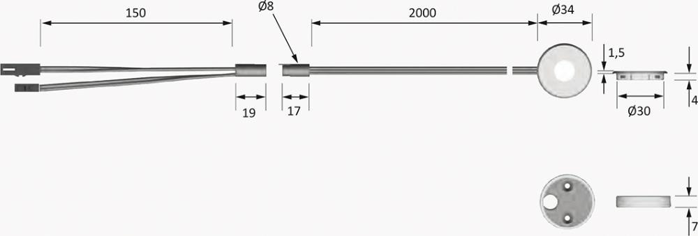LED Touch Schalter+Dimmer 12V, max. 36W, 2m LTG, M1