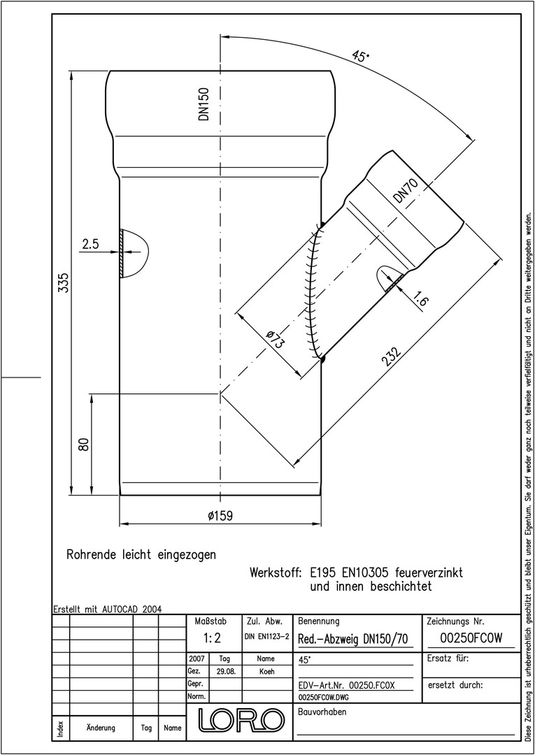 LORO X Reduzier-Abzweig DN 150/70, 45Grad