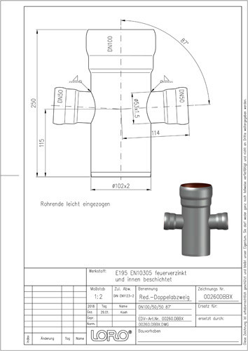 LORO X Reduzier-Doppelabzweig DN 100/50/50, 87°