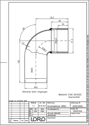 LORO X Winkelbogen DN 50, 2" AG, für Anschluss an Dunsthut 802X