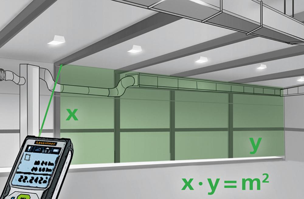 • Punktgenaues Messen mit Laser zur Ermittlung von Längen, Flächen und Volumen