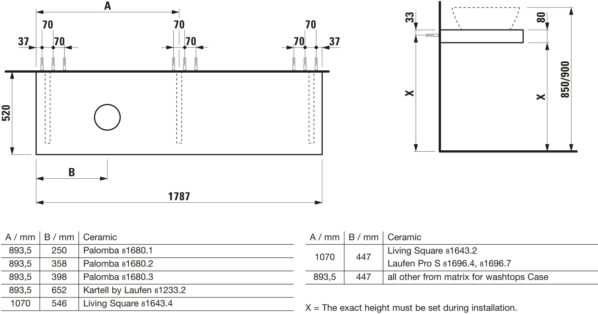 Laufen Waschtischplatte CASE 8 x 179 x 52 cm, mit Ausschnitt zentriert, weiß W491578