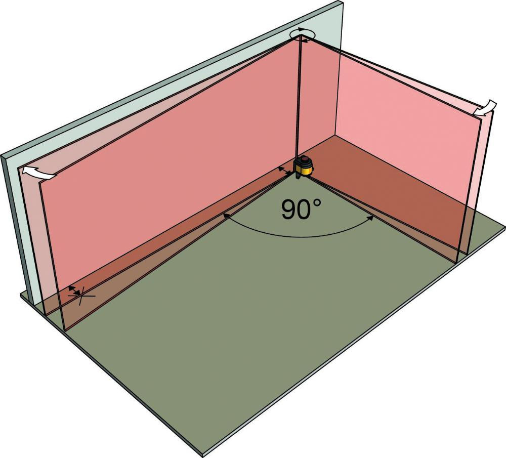• Mit der Feinjustierung können die Laserlinien an eine Zielposition geschwenkt werden, ohne die Original-Positionierung des Lotpunkts zu verlieren (z. B. zum präzisen Setzen von Trennwänden mit U-Profilen)