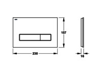 zur mechanischen WC-Spülauslösung bei MEPA UP-Spülkästen, Glas bzw. Edelstahl/Kunststoff, 230 x 157 x 11 mm, Betätigung von vorne, für aufgesetzte oder fliesenbündige Montage, EasyConnect-System für werkzeuglose Montage der Betätigungsplatte, bestehend aus Befestigungsrahmen, 2x Drückerstangen, 2x Distanzbolzen und Befestigungsmaterial