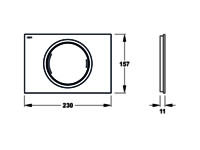 zur mechanischen WC-Spülauslösung bei MEPA UP-Spülkästen, Glas/Kunststoff, 230 x 157 x 11 mm, Betätigung von vorne, für aufgesetzte oder fliesenbündige Montage, EasyConnect-System für werkzeuglose Montage der Betätigungsplatte, bestehend aus Befestigungsrahmen, 2x Drückerstangen, 2x Distanzbolzen und Befestigungsmaterial