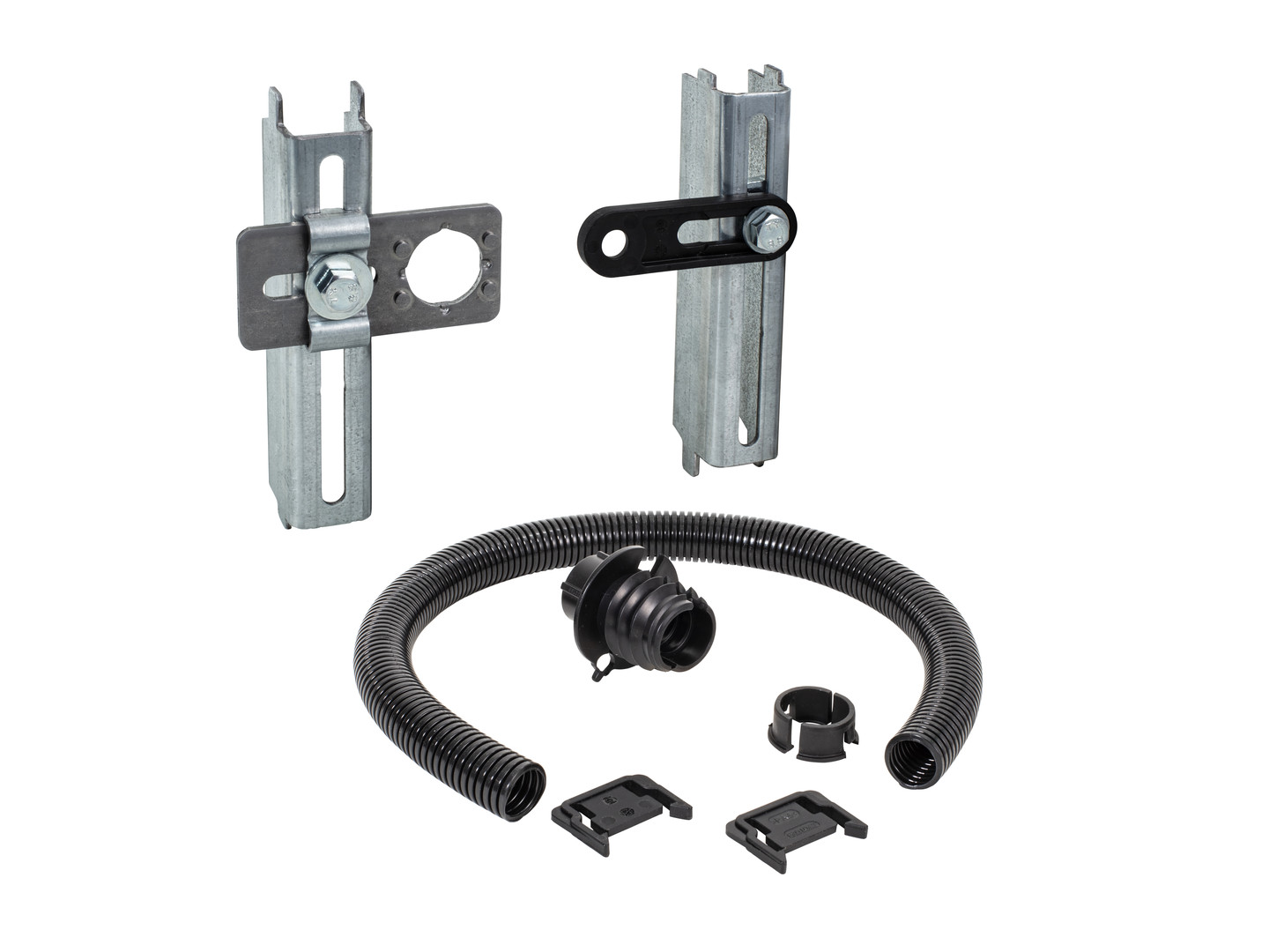zur Installation eines Wasser- und Elektroanschlusses für den Anschluss eines Dusch-WCs, Elektroanschluss für NYM-Kabel 3 x 1,5 mm2, Wasseranschluss für Panzerschlauch oder mit Wanddurchführung (Direktanschluss), Anschlüsse für Elektro- und Wasseranschluss höhen- und seitenverstellbar, bestehend aus 2x Montageprofile, werkzeuglos montierbar, Montagelasche für Elektrozuleitung, verstellbar, Montagelasche für Wasseranschluss, verstellbar, Leerrohr für Wasseranschluss mit Panzerschlauch, Befestigungsmaterial