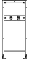vormontiertes Montageelement, für Trockenbaumontage, zur Einzelmontage vor eine Massiv- oder in eine Ständerleichtbauwand, zur Schienenmontage vor eine Massiv- oder vor eine Ständerleichtbauwand, selbsttragender Montagerahmen, geeignet zur Beplankung mit Gipsfaser- oder Gipskartonplatten, pulverbeschichteter Profilrahmen, höhenverstellbare Fußstützen 0-240 mm mit integrierter Rutschhemmung, Fußplatten drehbar (Bohrfehler ausgleichend, Tiefe passend zum Einbau in UW-Profil UW 50 und UW 75 und MEPA-C-Profil), Mittel- und Meterrissmarkierung zur exakten Ausrichtung der Achsmitte und Montagehöhe des Elementes, geeignet zur Wandbefestigung mit Stockschrauben M10, werkzeuglos, höhenverstellbare rutschhemmende AP-Armaturenplatte, Elementhöhe erweiterbar von 1150-1325 mm, bestehend aus Montage-Set zur Montage in Ständerleichtbauwand, AP-Armaturenplatte Schichtholzplatte 422 x 100 x 21 mm, 2x schallgedämmte MEPA-Wandscheiben G 1/2, Fußverlängerungsset 175 mm und Befestigungsmaterial