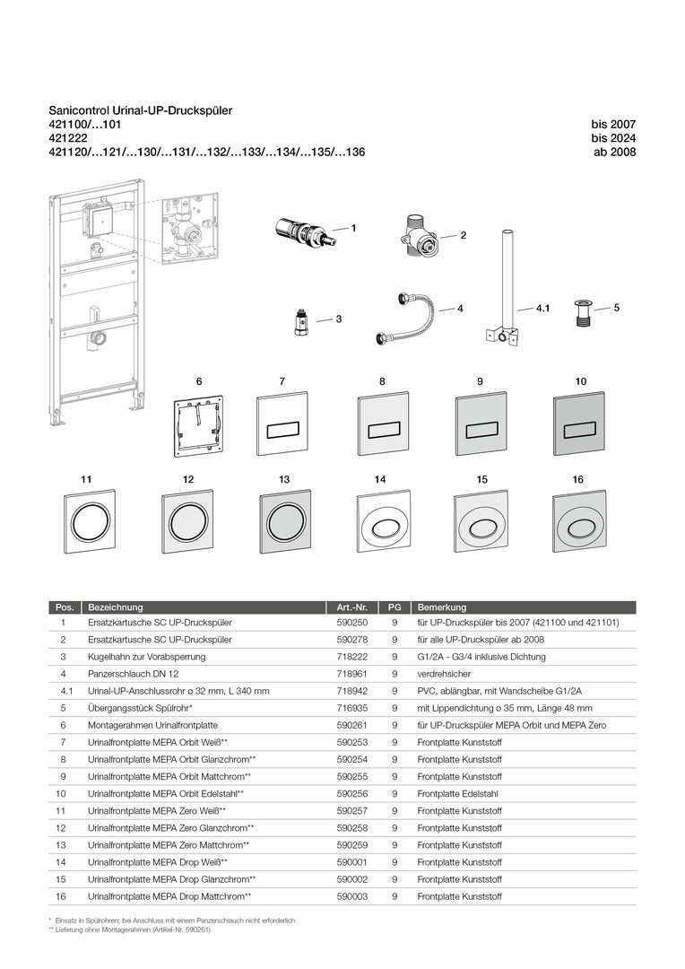 MEPA Urinal-UP-Druckspüler MEPAdrop matt chrom, Betätigungsplatte W354483