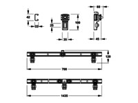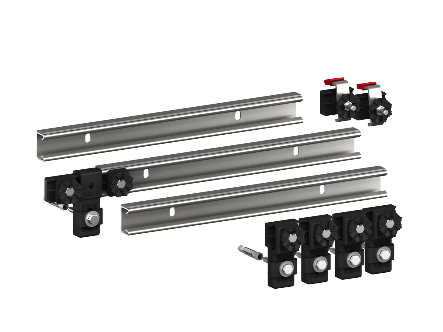 zur Befestigung und Unterstützung des Wannenrandes an der Wand bei Badewannen aus Stahl, Acryl und Mineralglas, werkzeuglose Arretierung, schallgedämmte Auflageflächen, Montageraster zur Höhenverstellbarkeit bis 20 mm, besteht aus 2x Klemmbügel, 4x verschiebbare Leistenfixierungen, 1x T-Verbindungsstück, Befestigungsmaterial