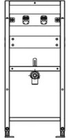 vormontiertes Montageelement für Waschtisch-Wandbatterie, für Trockenbaumontage, zur Einzelmontage vor eine Massiv- oder in eine Ständerleichtbauwand, zur Schienenmontage vor eine Massiv- oder vor eine Ständerleichtbauwand, selbsttragender Montagerahmen, geeignet zur Beplankung mit Gipsfaser- oder Gipskartonplatten, pulverbeschichteter Profilrahmen, höhenverstellbare Fußstützen 0-240 mm mit integrierter Rutschhemmung, Fußplatten drehbar (Bohrfehler ausgleichend, Tiefe passend zum Einbau in UW-Profil UW 50 und UW 75 und MEPA-C-Profil), Mittel- und Meterrissmarkierung zur exakten Ausrichtung der Achsmitte und Montagehöhe des Elementes, werkzeuglos höhenverstellbare rutschhemmende Anschlusstraversen für Wasseranschluss/Ablauf/Keramikbefestigung, Lochabstand Keramikbefestigung max. 400 mm, Montage handelsüblicher Wandscheiben G 1/2 möglich, Elementhöhe auf Keramik anpassbar (erweiterbar von 1150-1325 mm), besteht aus Montage-Set zur Montage in Ständerleichtbauwand, 2x schallgedämmte MEPA-Wandscheiben G 1/2, höhenverstellbarer Ablaufbogenhalter, HT-Ablaufbogen DN 50 mit Gummimanschette NW 30/50, Befestigung Keramik Schichtholzplatte 420 x 100 x 38 mm, 2x Stockschrauben M10, Fußverlängerungsset 175 mm und Befestigungsmaterial