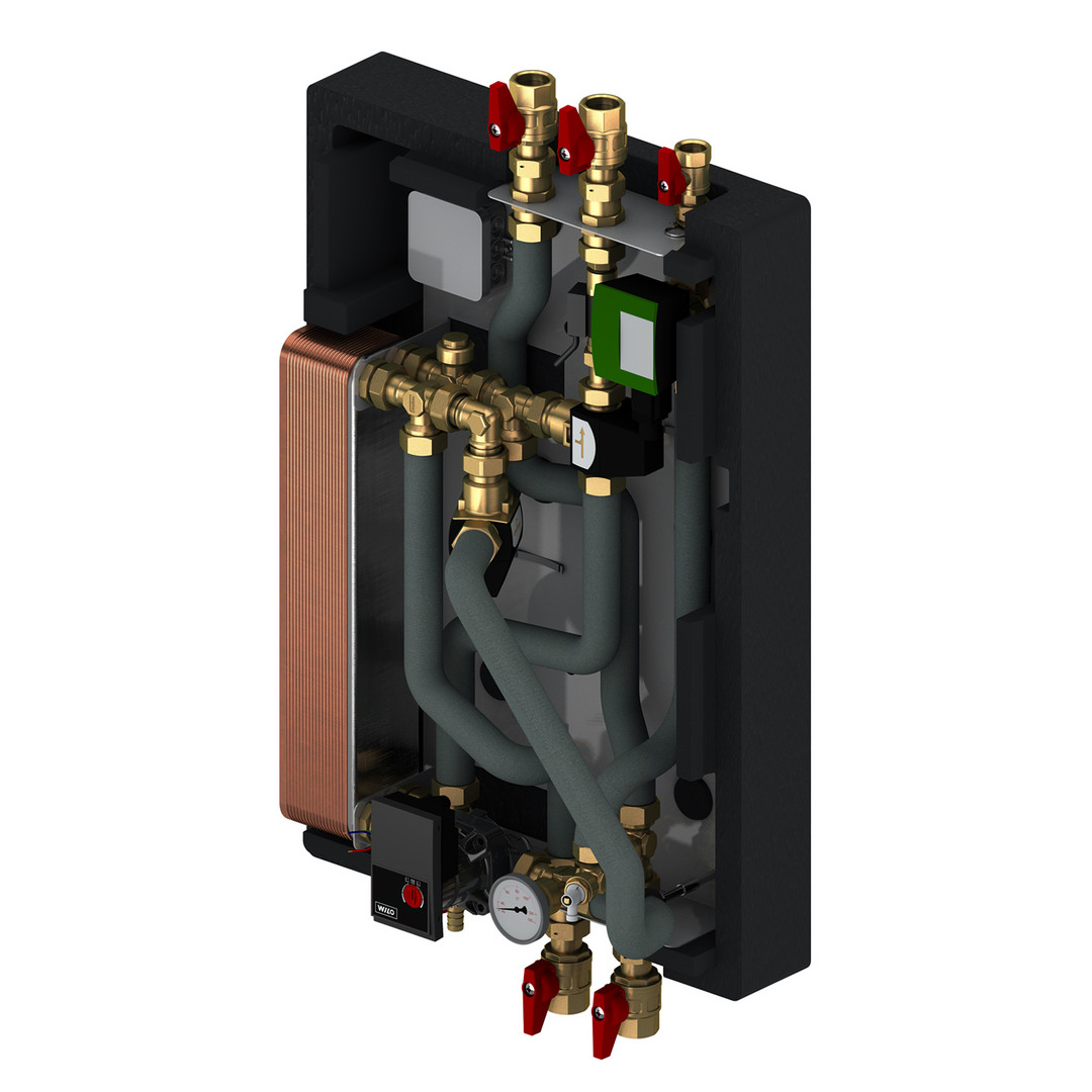 kompakte, anschlussfertige zentrale Frischwasserstationen mit thermostatisch geregelter Warmwasserbereitung je nach System als Wand- oder Speichermontage erhältlich, max. Druck Heizung/Sanitar 3 bar/6 bar, max. zulässige Temperaturen Heizung/Sanitar 110 °C/110 °C, Versorgungsspannung: 230 V/50 Hz