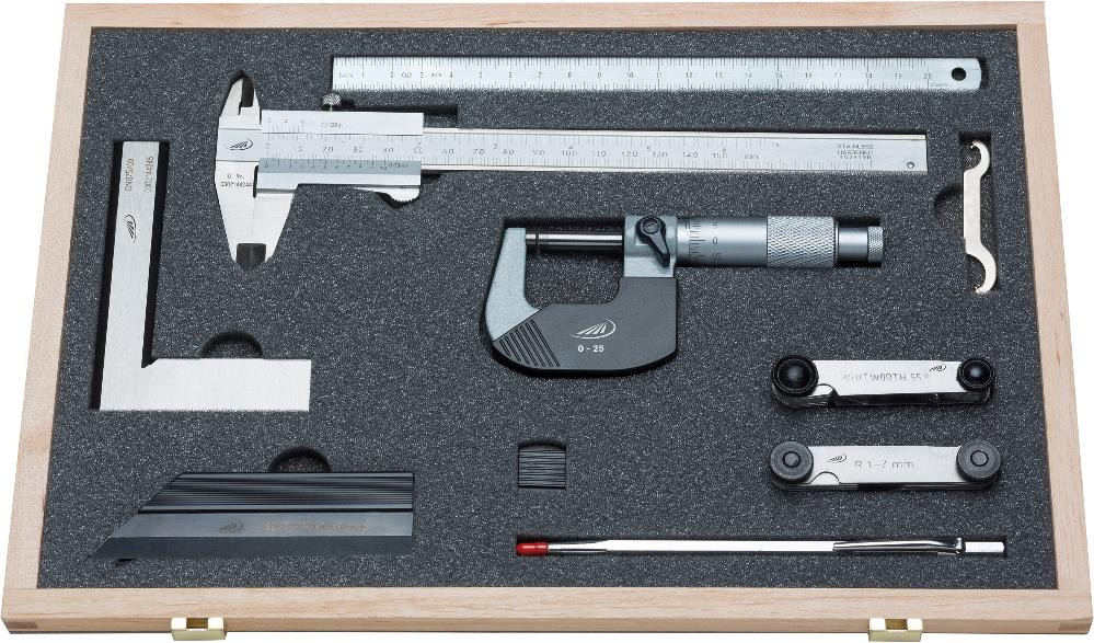 1 Bügelmessschraube mit HM-Messflächen, Messbereich 0–25 mm, Ablesung 0,01 mm
