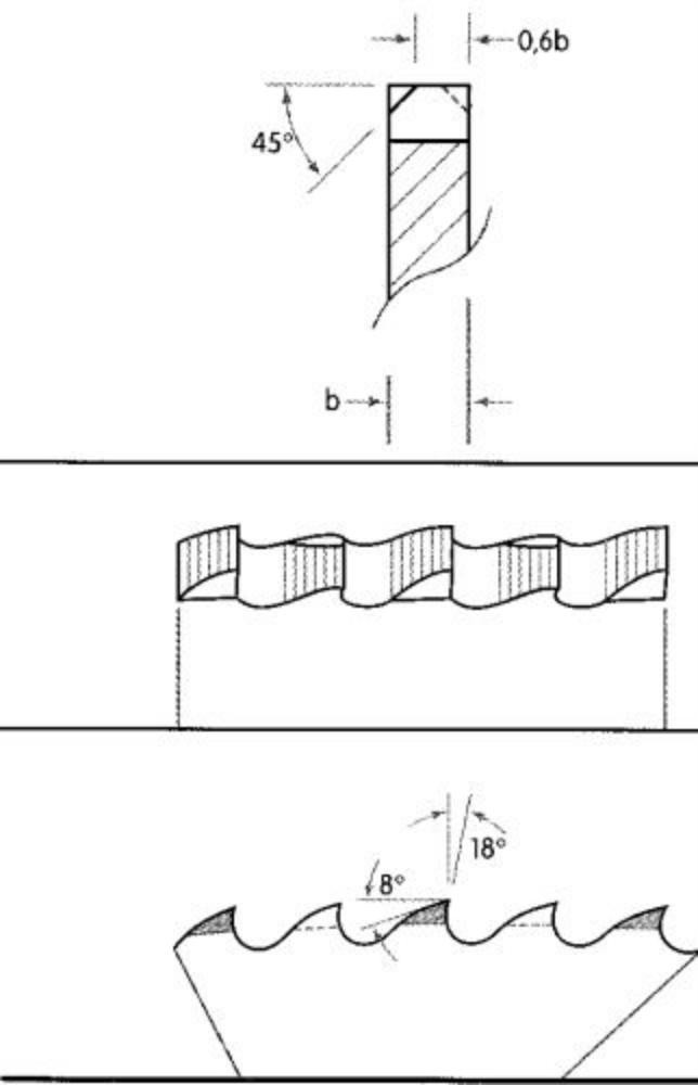 BW = Bogenzahn mit wechselseitiger Anfasung bis 4 mm Zahnteilung.