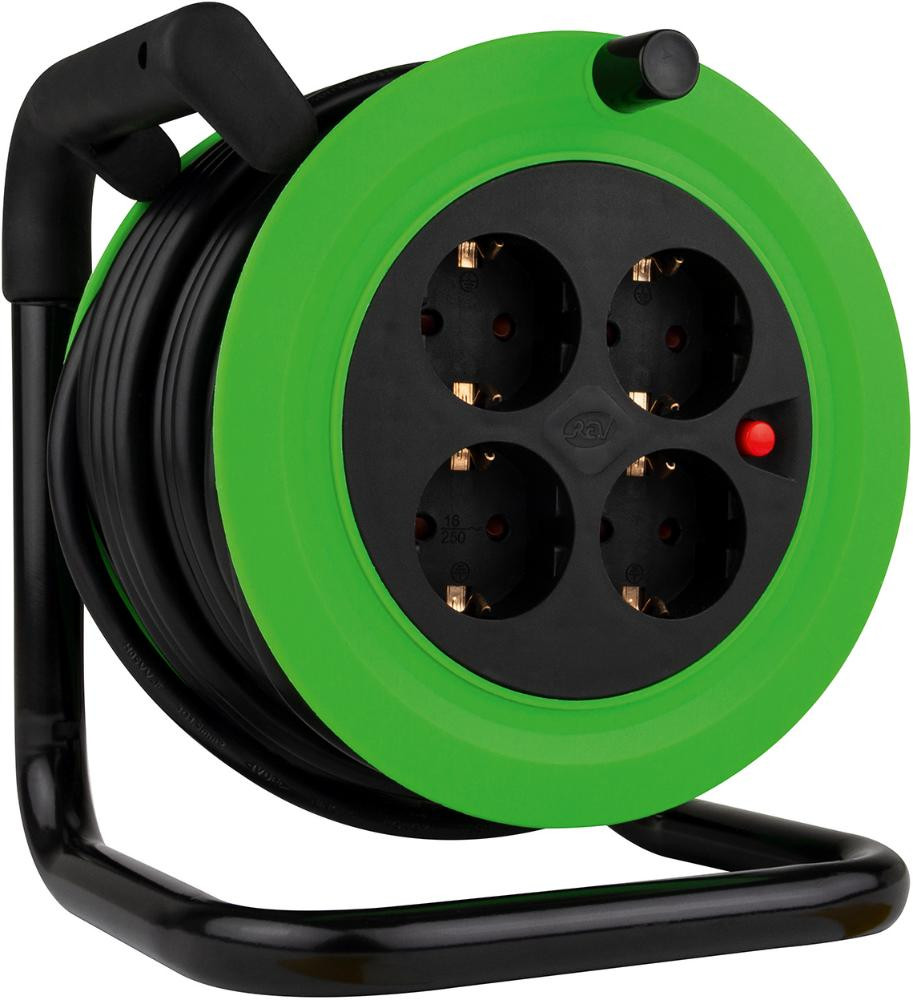 Mini-Kabeltrommel 15m H05VV-F3G1,5 schwarz/grün REV
