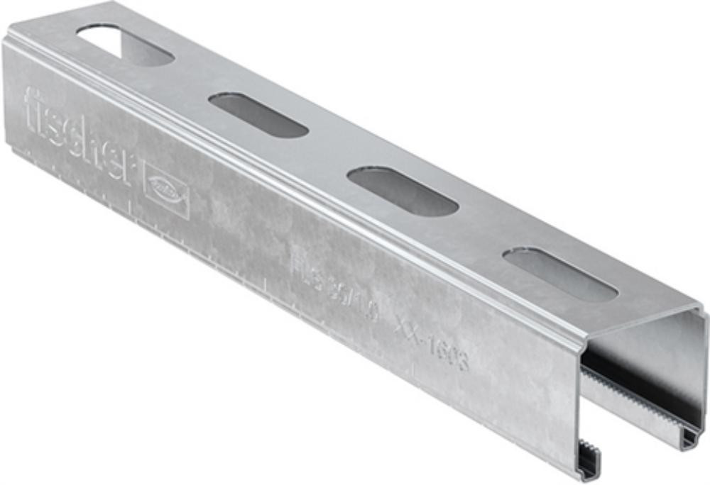 Die fischer Montageschiene FLS ist ein Basiselement des flexiblen Schienensystems. Das C-Profil in 3 Bauhöhen bietet mit ausgeprägter Verzahnung und Ecksicken den Konstruktionselementen des FLS Systems sicheren Halt. Dies ermöglicht bei horizontalen und vertikalen Installationen die schnelle und rationelle Befestigung von Rohrsträngen und Tragekonstruktionen. Alternierende Langlöcher für die optimale Befestigung sowie die Skalierung auf den Schienen, die das Ablängen sowie das Platzieren der Verbindungselemente unterstützen, bieten Sicherheit und vereinfachen die Montage. Der Brandprüfbericht nach MLAR / EN1363-1 der FLS 37 bietet ein Plus an Sicherheit.