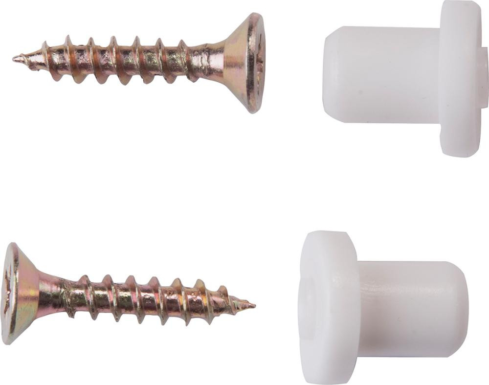 Hinweis: Bestehend aus 2 x Spreiznocken Kunststoff, 2 x 5 x 25 Kreuzschlitz-Senkschrauben.