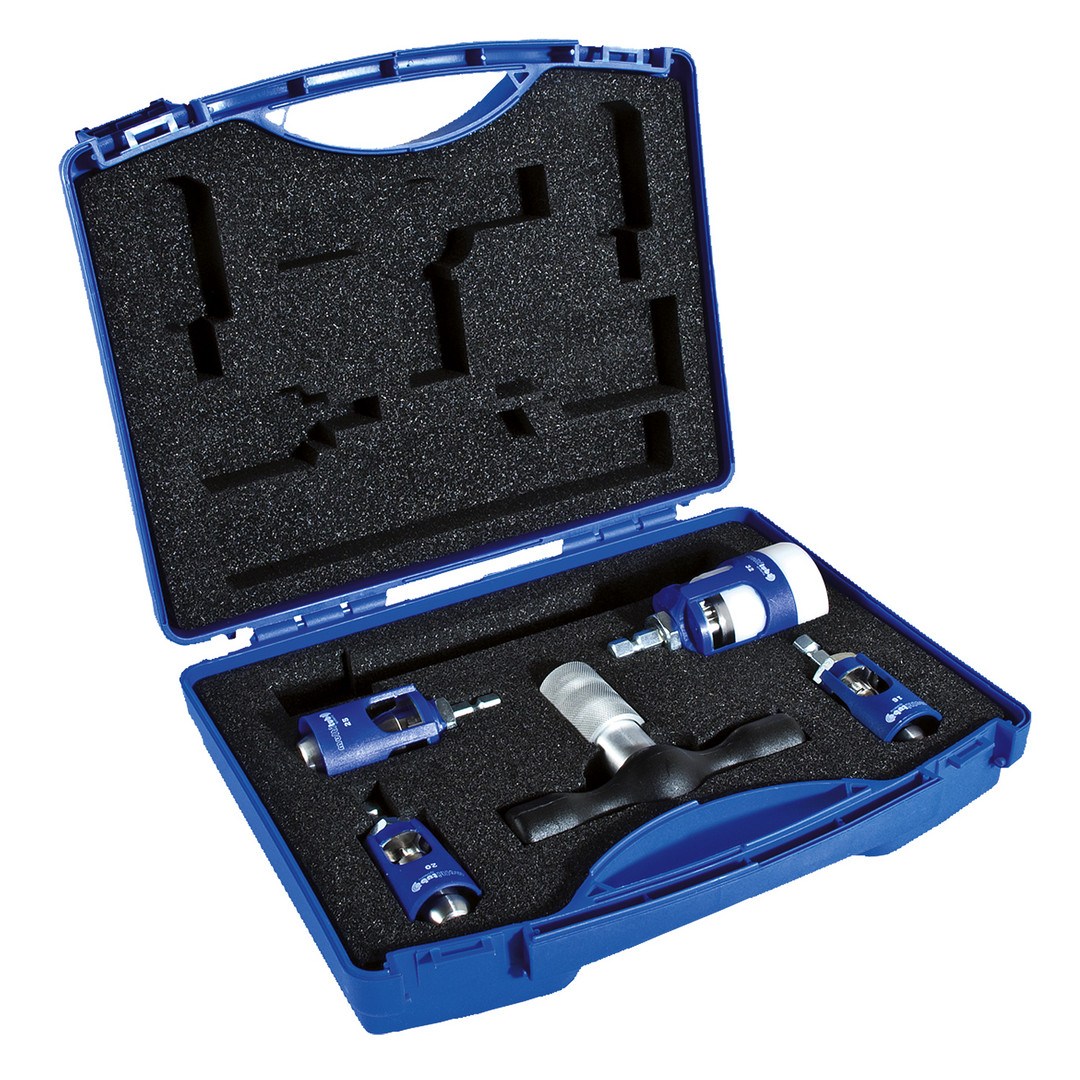 bestehend aus Entgrater-Einsätzen 16/20/25/32 und Wechselgriff, geliefert im Kunststoffkoffer