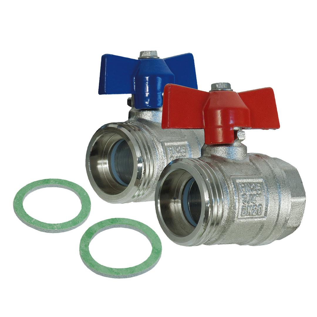 Multitubo Kugelhahn-Set 1" AG x 3/4" AG, Messing, 2 Stück, flachdichtend 238046