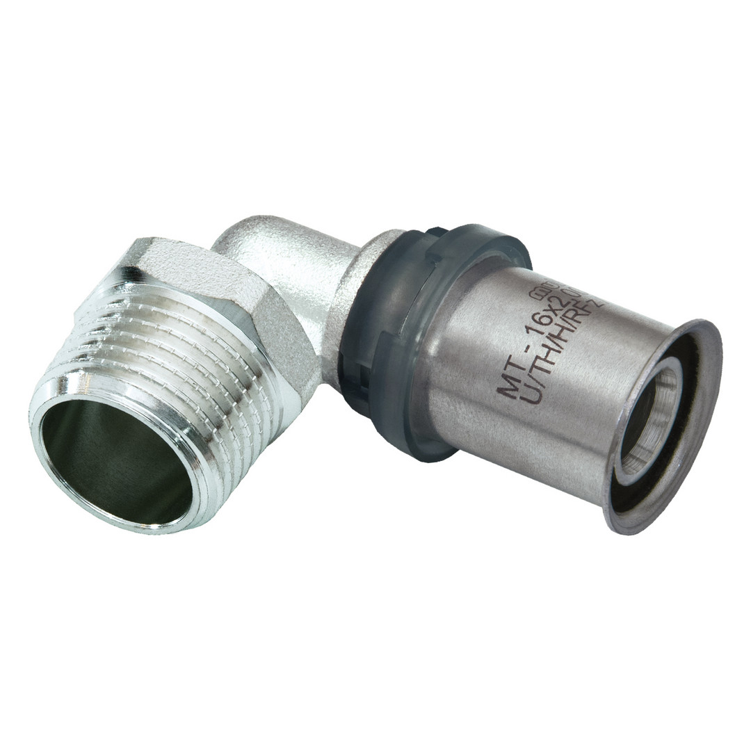 Multitubo Metall-Press-Übergang G2 16 mm x 1/2" AG, 90Grad, Messing verzinnt 261484