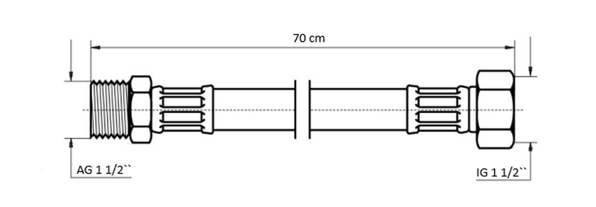 NEOPERL Panzerschlauch NEOFLEX DT 1 1/2" x 1 1/2", 700 mm, AGxIG, diffusionsdicht W334297