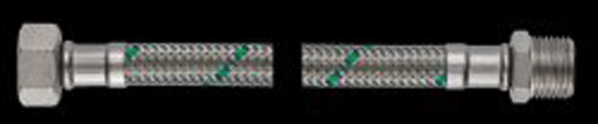 mit Edelstahlumflechtung, flexibler Innenschlauch, nicht geeignet für Öl-/Gas-/Säure- und Druckluftanwendungen, Zulassungen DVGW/KTW-A/W270 bis DN 25/W543 bis 2 m, Betriebsdruck 10 bar, Betriebstemperatur max. 70 °C