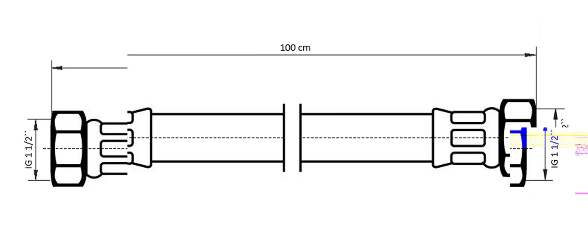NEOPERL Panzerschlauch TECHLINE NT IGxIG, DN 40, 1 1/2" x 1 1/2", 1000 mm