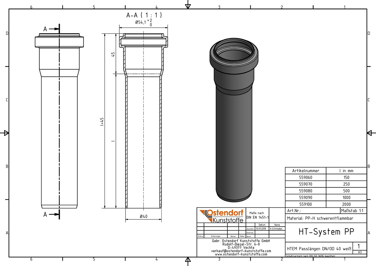 Ostendorf HT Rohr EM DN 40, weiß, 250 mm