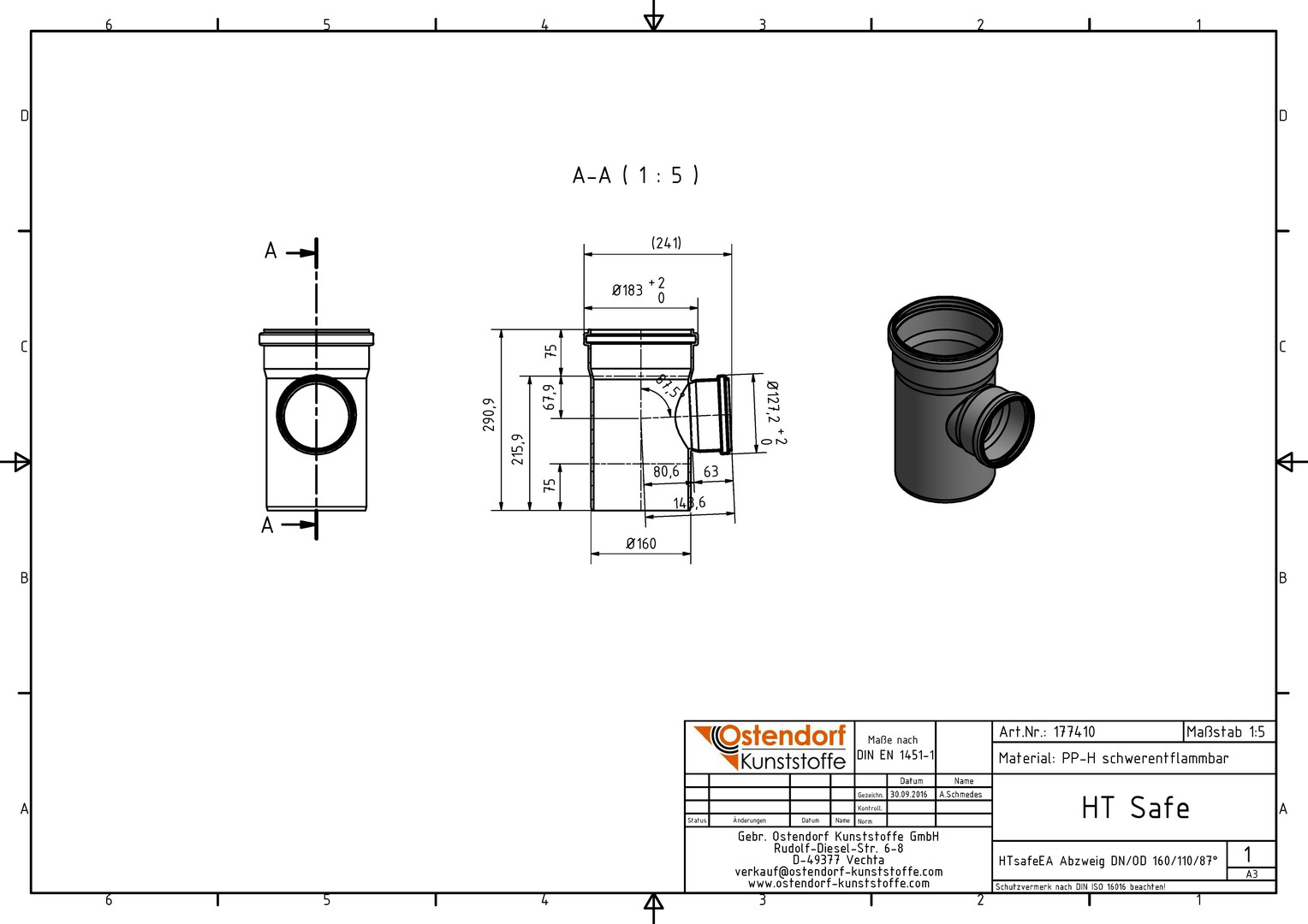 Ostendorf HTsafe Abzweig EA DN/OD 160/110 x 87,5°