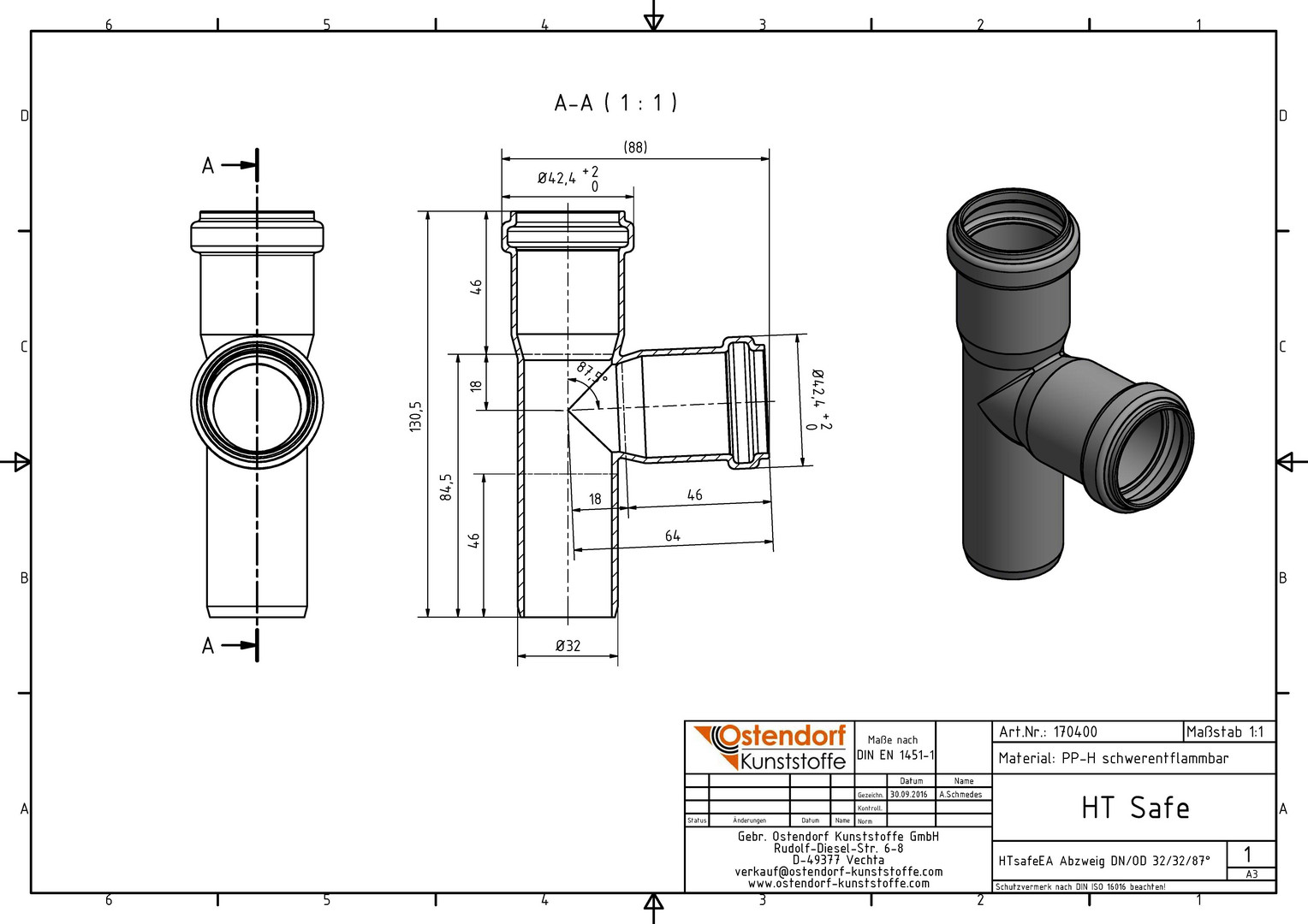Ostendorf HTsafe Abzweig EA DN/OD 32/32 x 87,5°