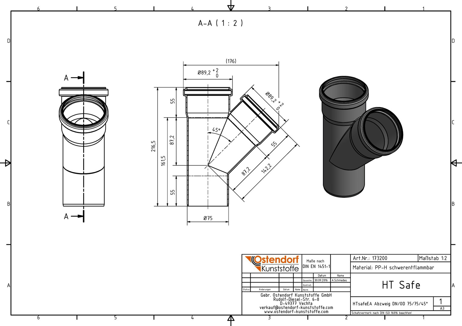 Ostendorf HTsafe Abzweig EA DN/OD 75/75 x 45°