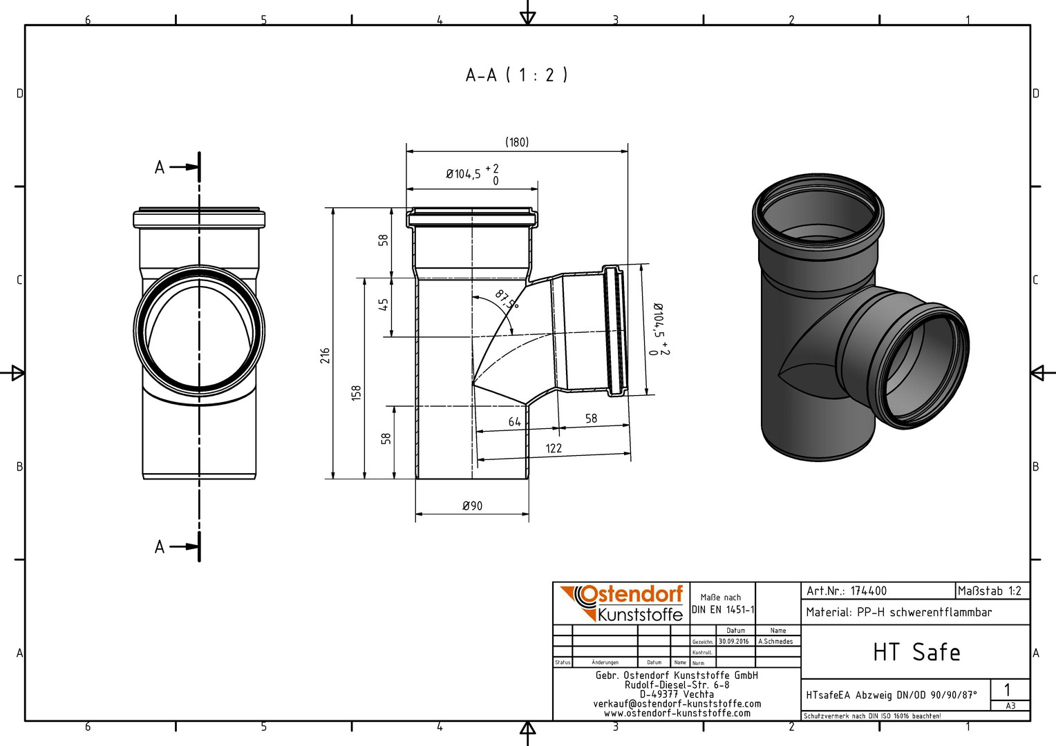 Ostendorf HTsafe Abzweig EA DN/OD 90/90 x 87,5°