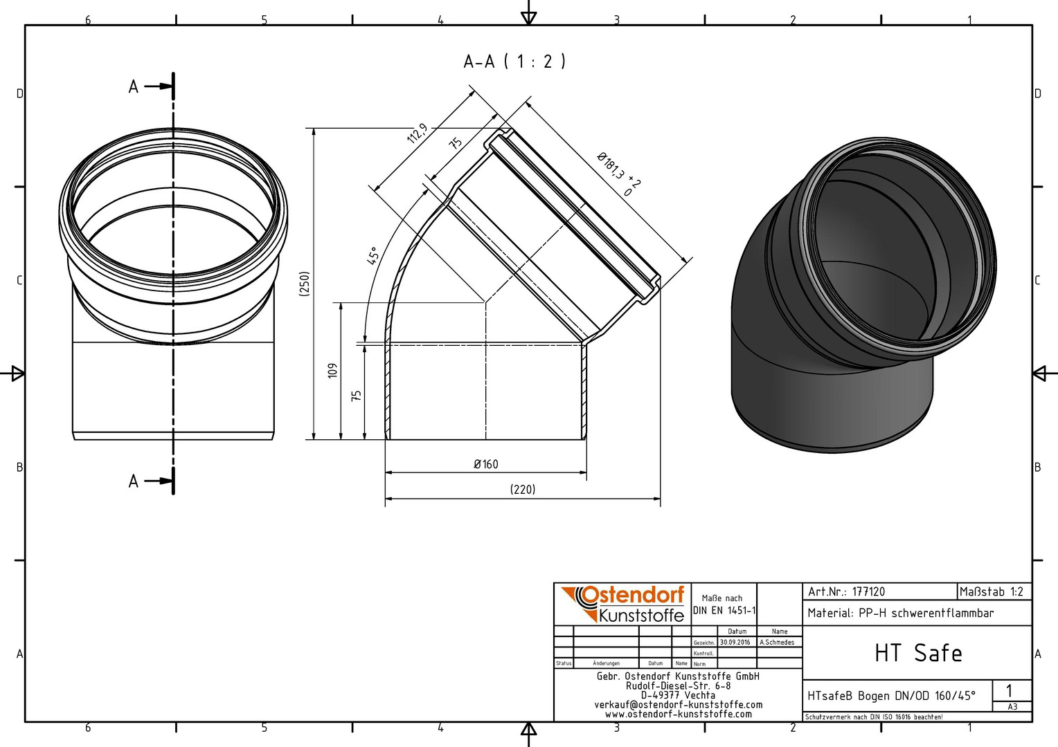 Ostendorf HTsafe Bogen B DN/OD 160, 45°