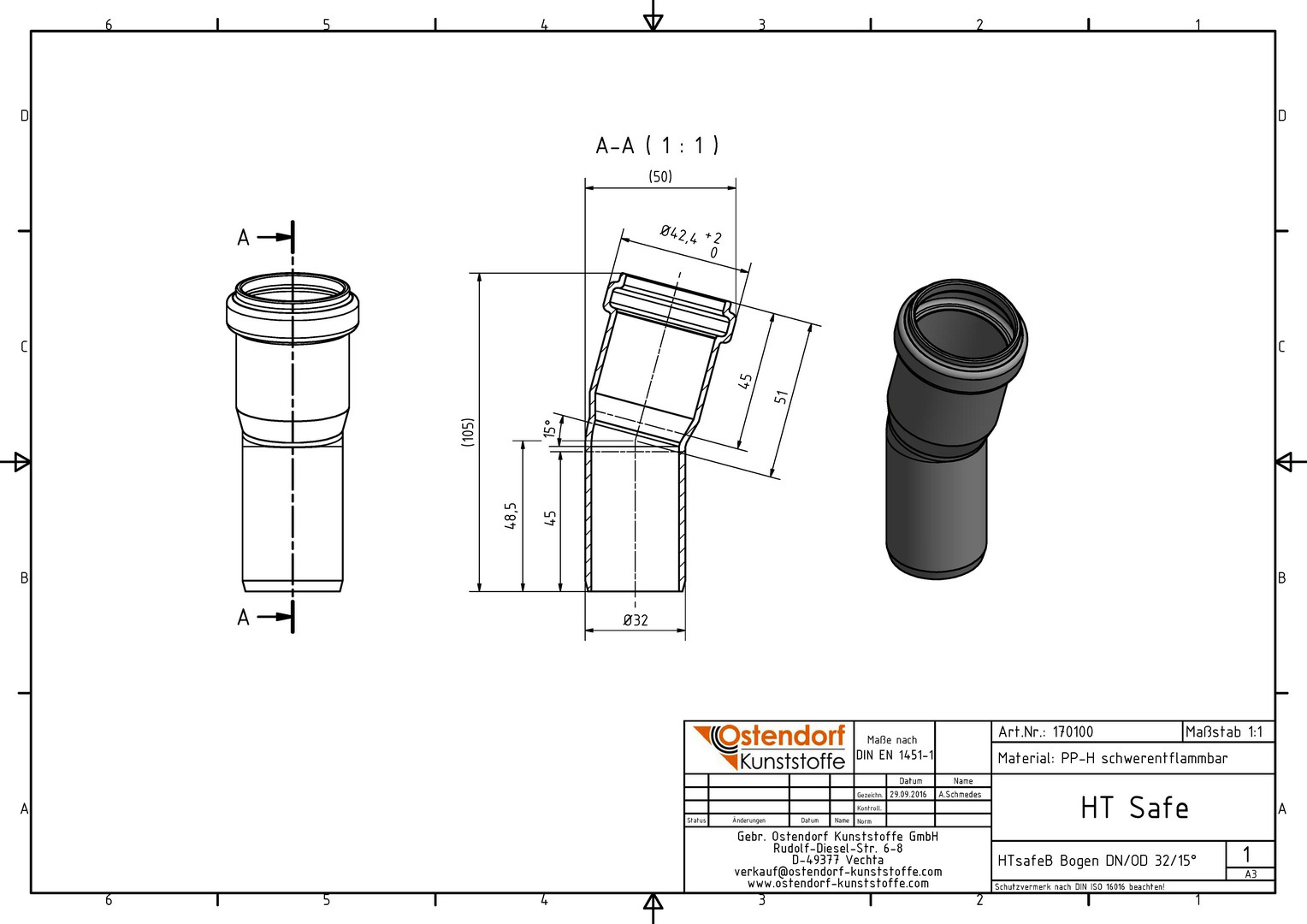Ostendorf HTsafe Bogen B DN/OD 32, 15°