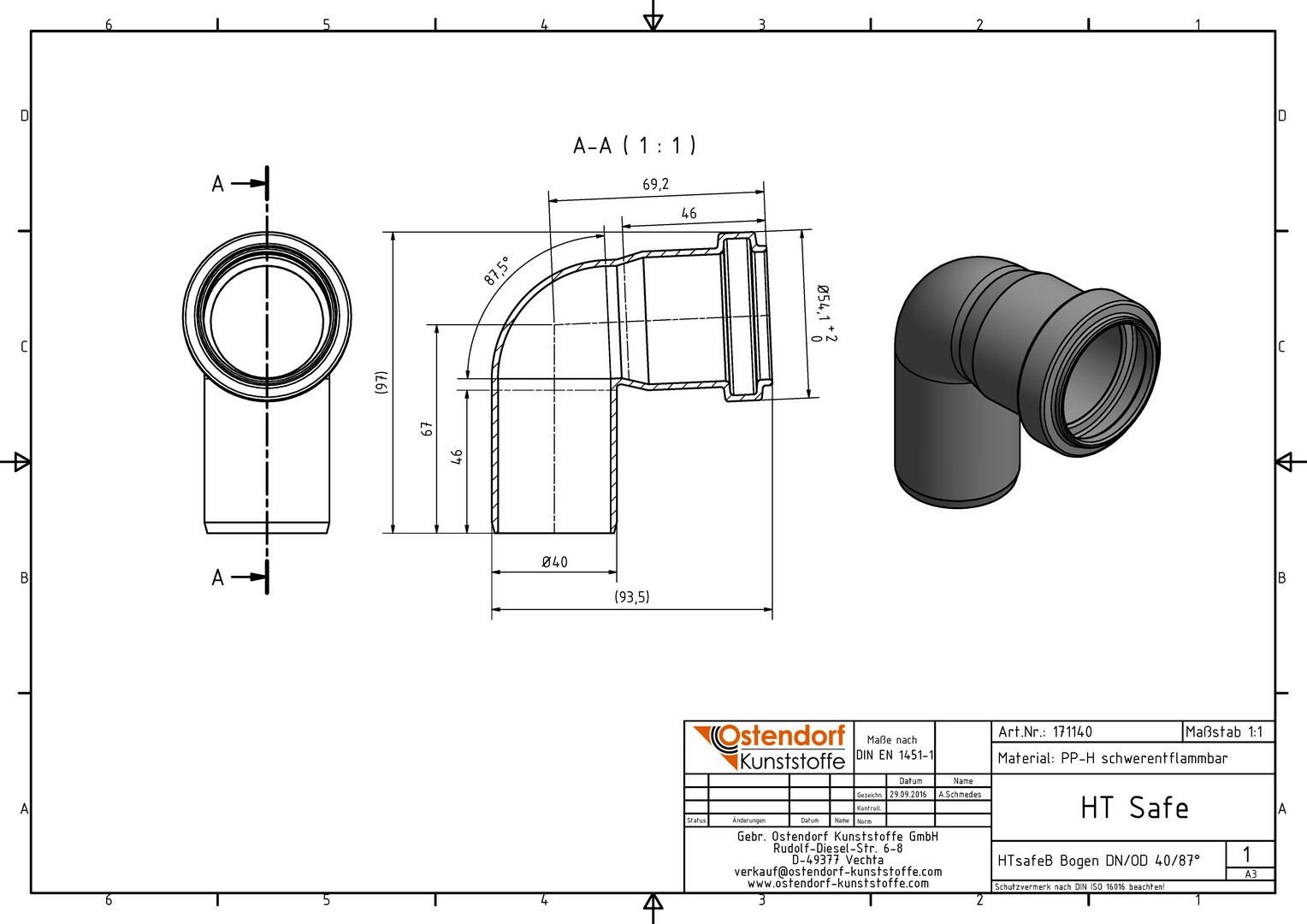 Ostendorf HTsafe Bogen B DN/OD 40, 87,5°