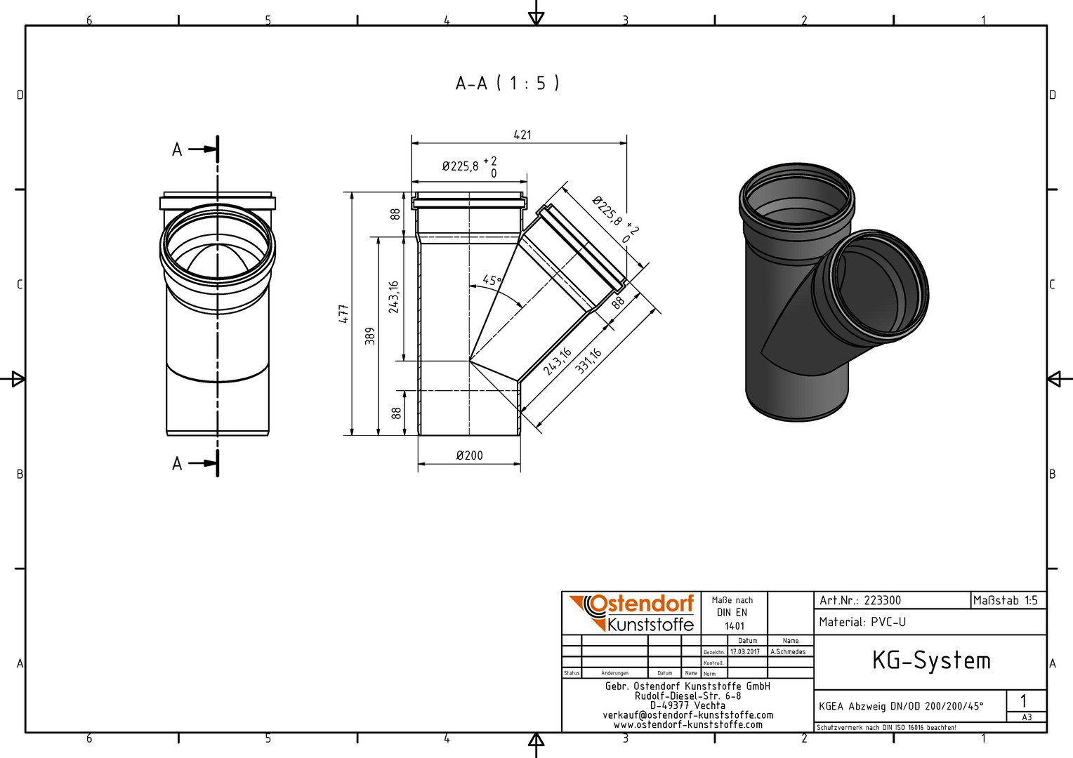 Ostendorf KG Abzweig EA DN/OD 200/200 x 45°