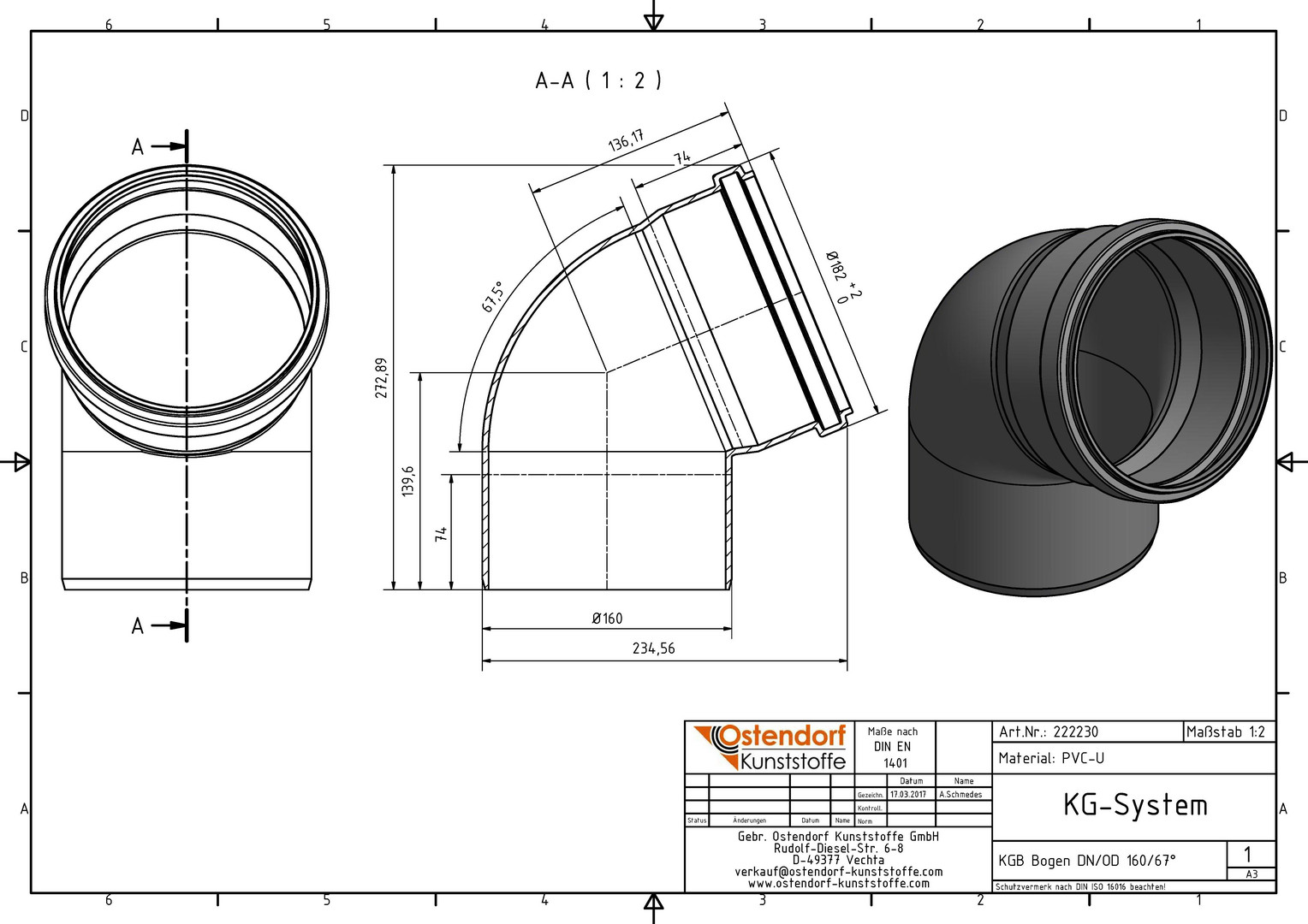 Ostendorf KG Bogen B DN/OD 160, 67,5°