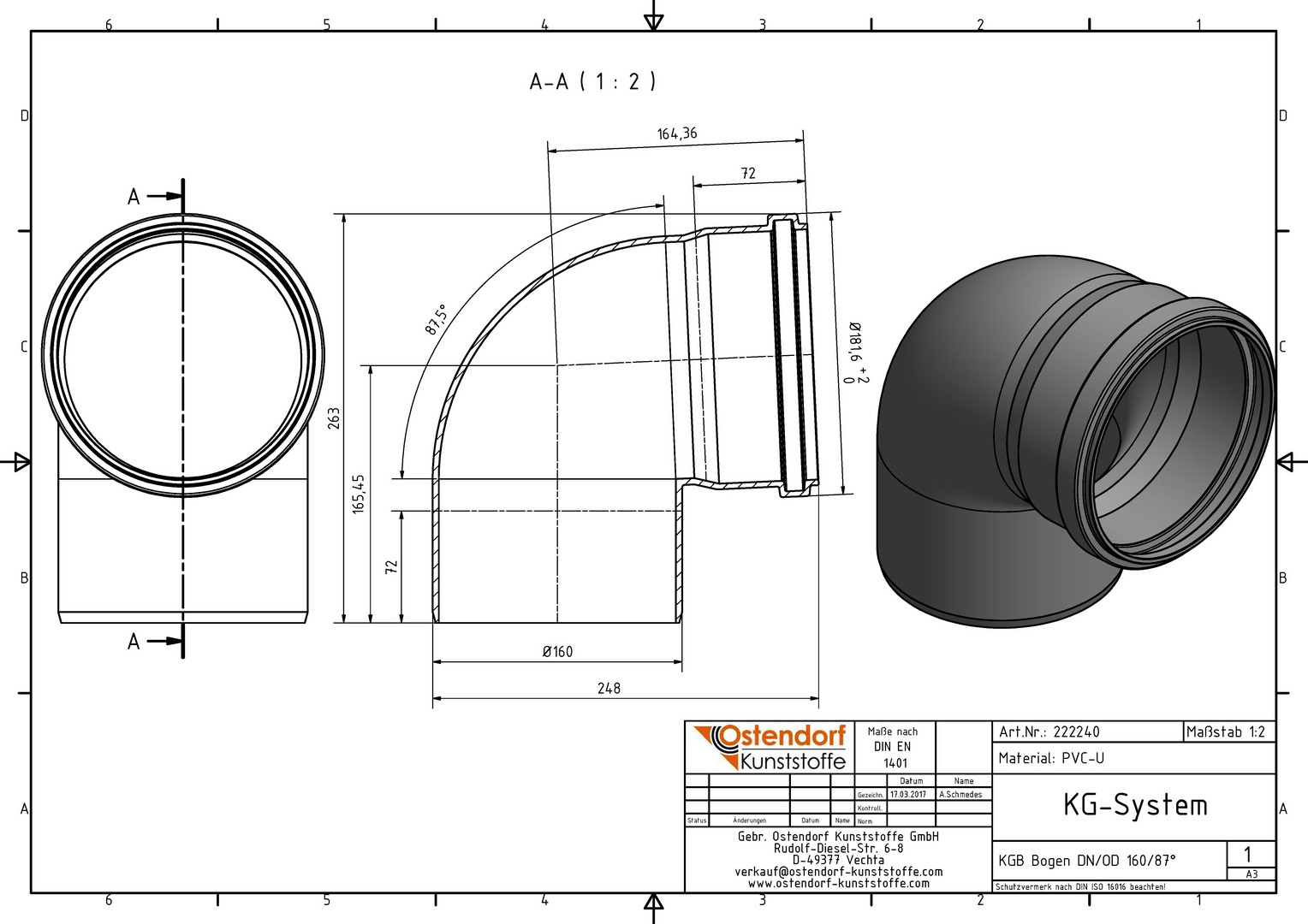 Ostendorf KG Bogen B DN/OD 160, 87,5°