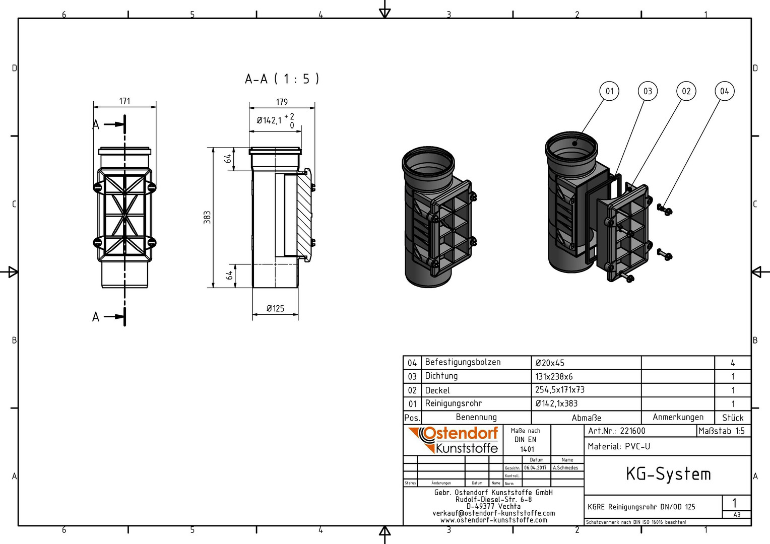 Ostendorf KG Reinigungsrohr RE DN/OD 125, Deckel eckig