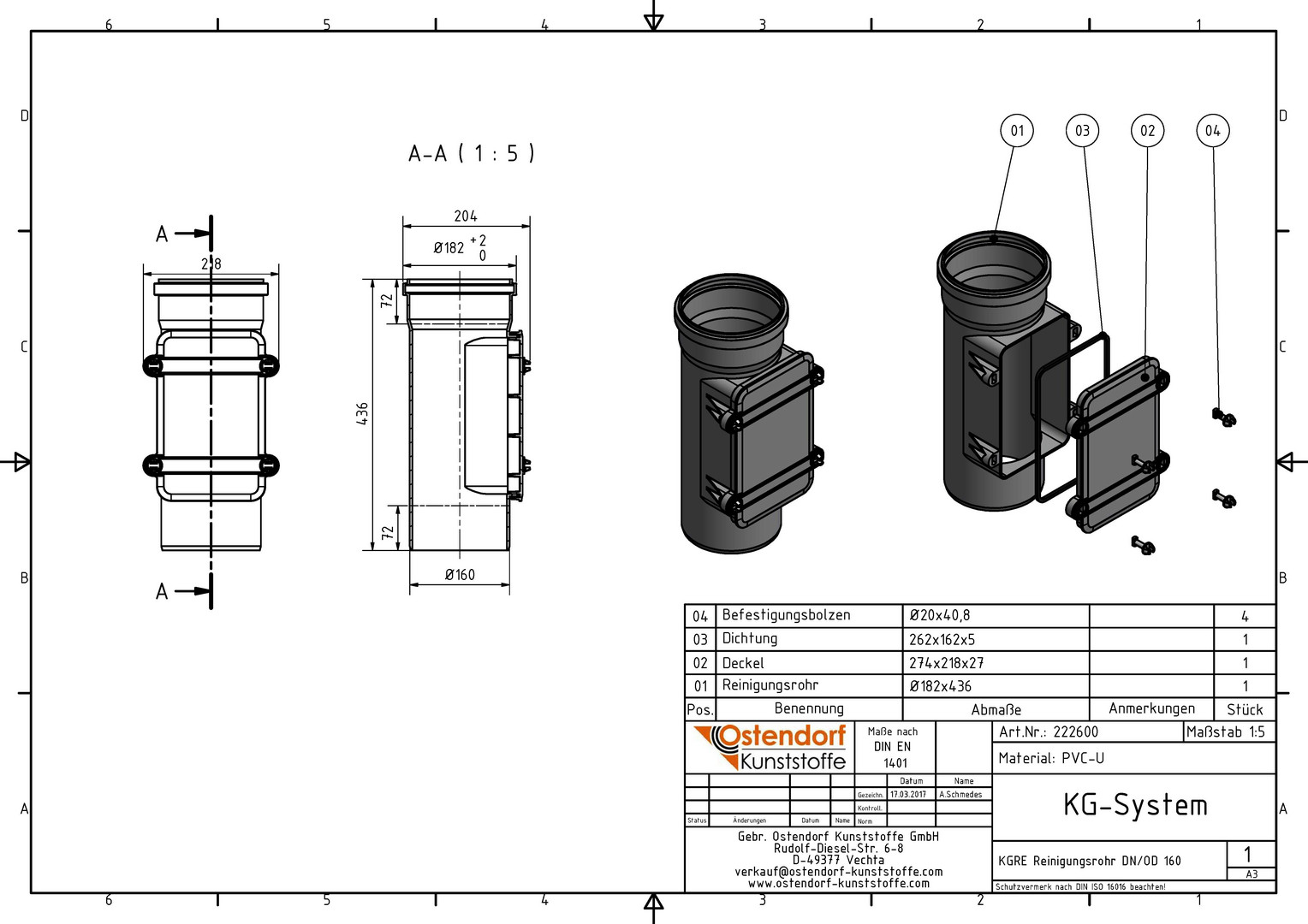 Ostendorf KG Reinigungsrohr RE DN/OD 160, Deckel eckig